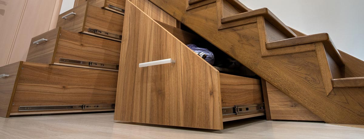 Przestrzeń pod schodami to często zapomniane miejsce, które można zamienić w naprawdę cenny schowek. Zaleca się dodanie w przestrzeni pod schodami półek, szafek lub szuflad. Jeśli nie masz pomysłu co możesz tam przechowywać, podpowiadamy. Może to być dowolna odzież wierzchnia np. (rękawiczki, czapki, parasol, torby na zakupy). Podsumowując, w tym miejscu dobrze jest przechowywać takie przedmioty, które często musisz szybko zabrać, gdy wychodzisz z domu. Natomiast dzięki różnym półkom i szufladom w przestrzeni pod schodami, to wszystko masz pod ręką i nie tracisz czasu na szukanie tych rzeczy w innych miejscach domu.