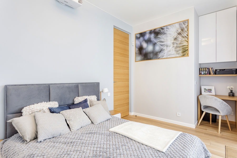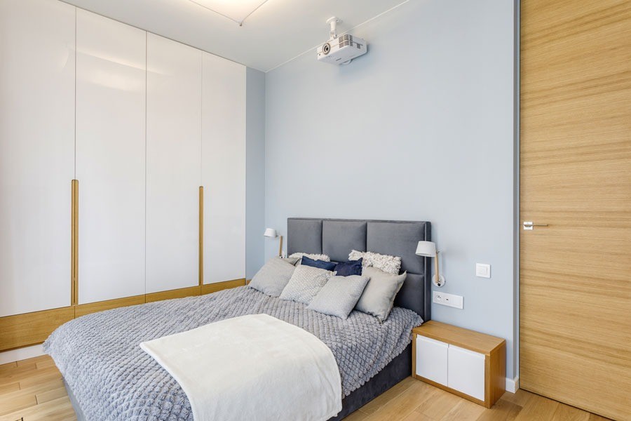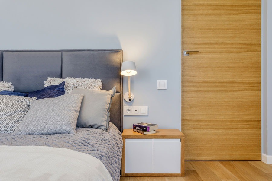 Wszystkie wnętrza mieszkania na Mokotowie łączy spójna kolorystyka i styl. Drewno w naturalnym ciepłym wybarwieniu tworzy przytulną atmosferę, podczas gdy czarne powierzchnie i dodatki nadają pomieszczeniom nowoczesnego charakteru. Ta harmonijna kombinacja sprawia, że mieszkanie staje się idealnym miejscem do odpoczynku i relaksu.