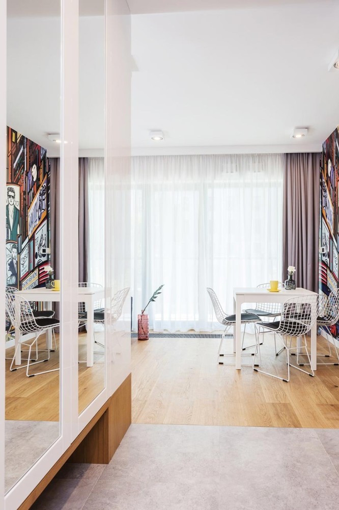 Kawalerka na Żoliborzu w Warszawie została zaprojektowana w sposób spójny i funkcjonalny. Projektant wnętrz skupił się na stworzeniu miejsca, które będzie idealne dla studenta. Prostota i ciekawe rozwiązania, takie jak tapeta w salonie, nadają wnętrzom charakteru. Wykorzystanie maksymalnej przestrzeni w kuchni i łazience sprawia, że mieszkanie jest praktyczne i wygodne w codziennym użytkowaniu.