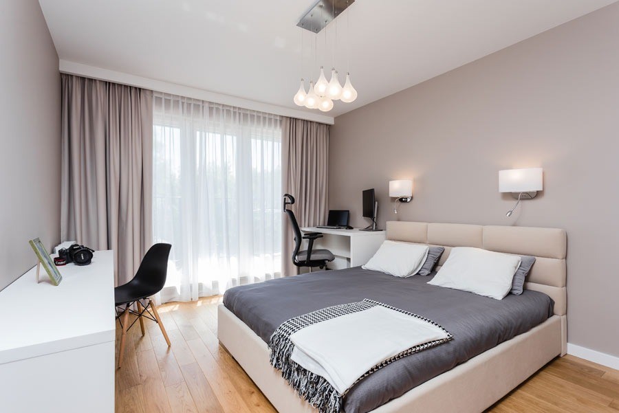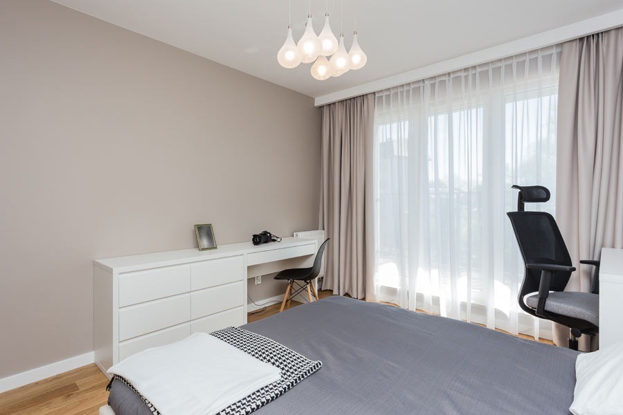 Funkcjonalne szafki i wieszaki ułatwiają utrzymanie porządku, a jednocześnie dodają elegancji do wnętrza. Cztery sypialnie to miejsca do wypoczynku i prywatności dla każdego członka rodziny. Neutralne kolory i naturalne materiały użyte w aranżacji sprawiają, że te pokoje są przytulne i relaksujące. Każda sypialnia została zaprojektowana z myślą o potrzebach użytkowników, oferując wygodne łóżka i odpowiednie miejsce do przechowywania.