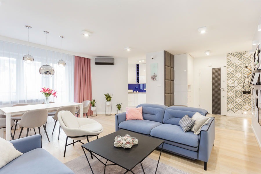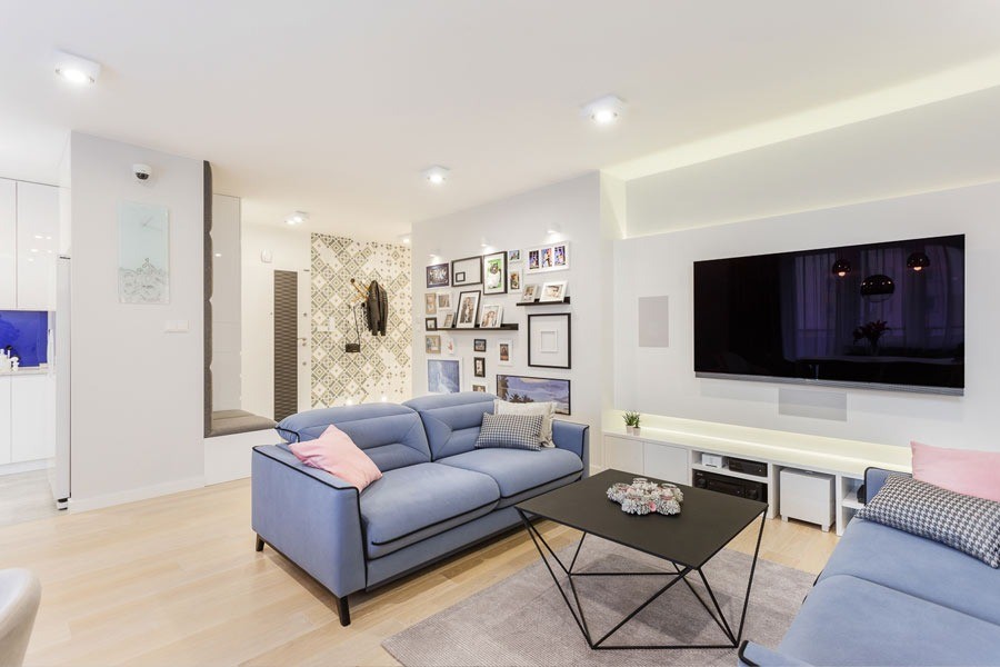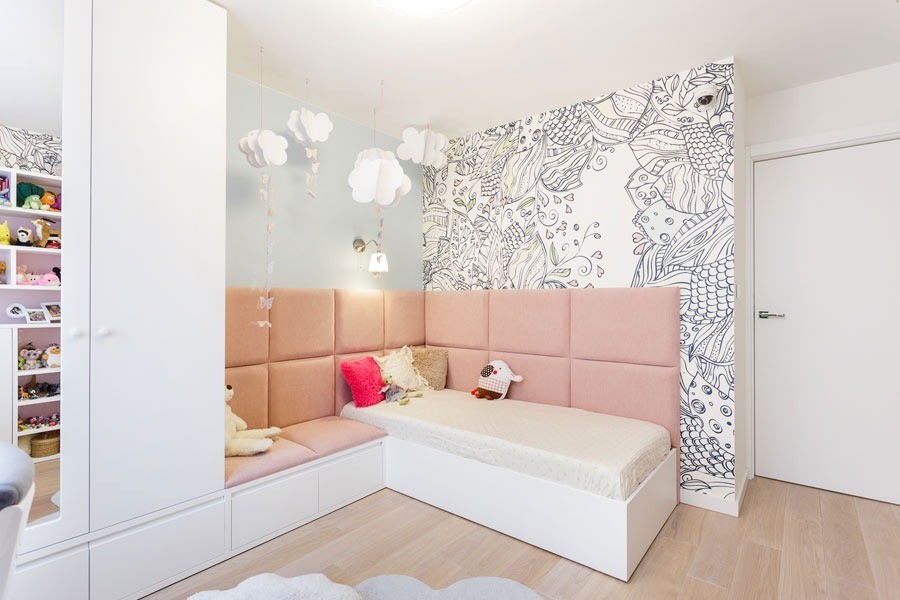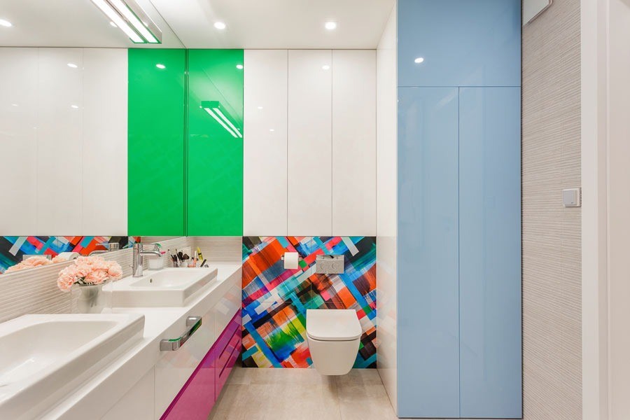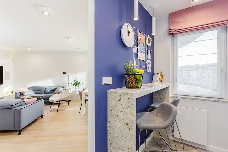 Projekt wnętrz stworzony dla 3-osobowej rodziny. Z mieszkania w piętnastoletnim bloku udało się wydobyć pełną koloru i lekkości oazę dla Inwestorów.