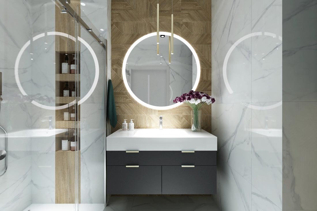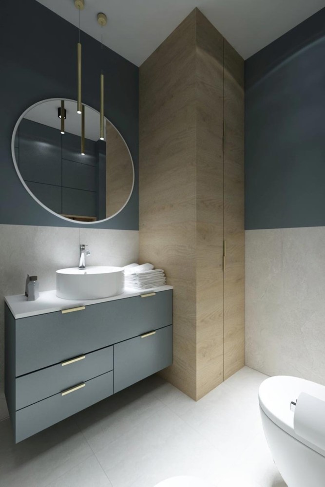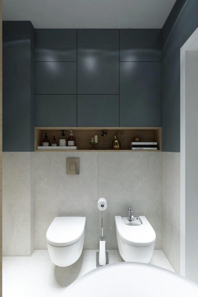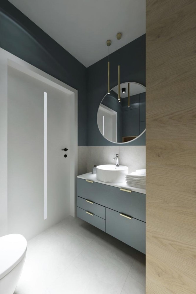 W mieszkaniu znajdują się dwie łazienki, każda w innej, ciekawej kolorystyce.