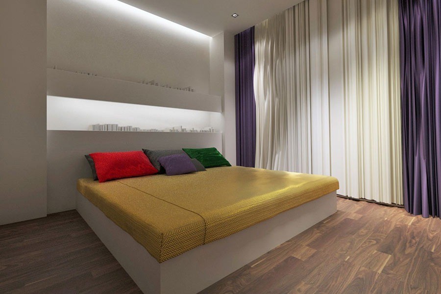 Jednym z najbardziej imponujących pomieszczeń w tym projekcie jest sypialnia. Duże, przestronne wnętrze zachwyca prostotą formy i brakiem zbędnych dekoracji. Projektant postawił tutaj na minimalizm, co sprawia, że sypialnia wydaje się być jeszcze większa i bardziej funkcjonalna. Jasne kolory ścian oraz wykorzystanie naturalnego światła wprowadzają do wnętrza przyjemną atmosferę spokoju i relaksu. Połączenie prostych linii i minimalistycznego designu sprawiają, że sypialnia jest idealnym miejscem do odpoczynku po intensywnym dniu.