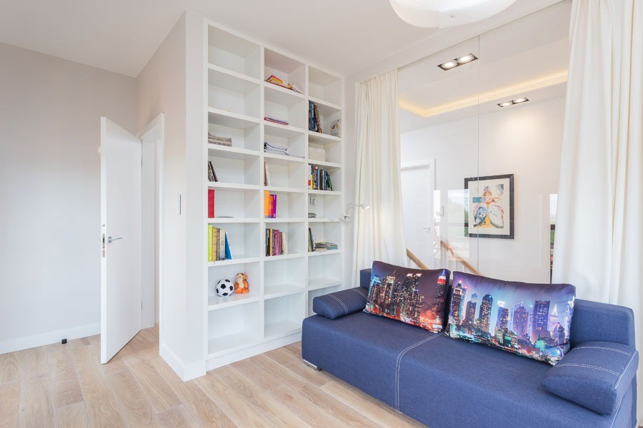 Lokal pierwotnie miał pełnić funkcję biura, co stanowiło wyzwanie przy adaptacji na mieszkanie. Najważniejszym zadaniem było wydzielenie trzech sypialni i łazienki na drugim poziomie, co udało się osiągnąć dzięki przemyślanemu planowaniu.