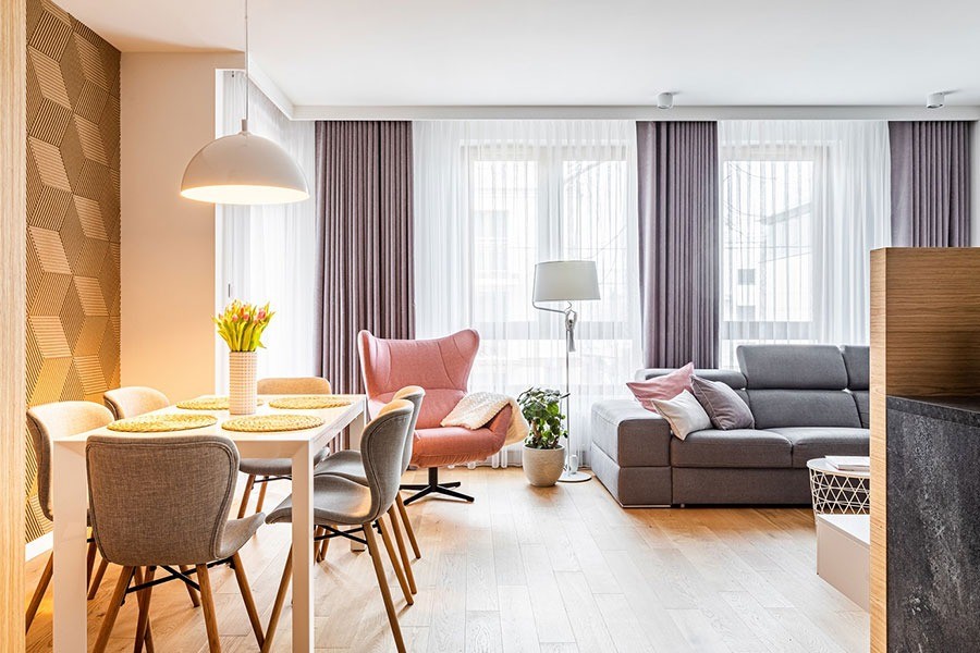Wnętrze mieszkania na Warszawskich Włochach to doskonały przykład projektu, który spełnia oczekiwania klientów pod względem funkcjonalności, estetyki i nowoczesności. Projektant wnętrz dokładnie przemyślał każdy detal, dbając o to, aby mieszkanie było nie tylko piękne, ale także komfortowe i przytulne. Dzięki odpowiednio dobranemu oświetleniu, materiałom, meblom i tkaninom, udało się osiągnąć maksymalne rozjaśnienie i powiększenie przestrzeni.